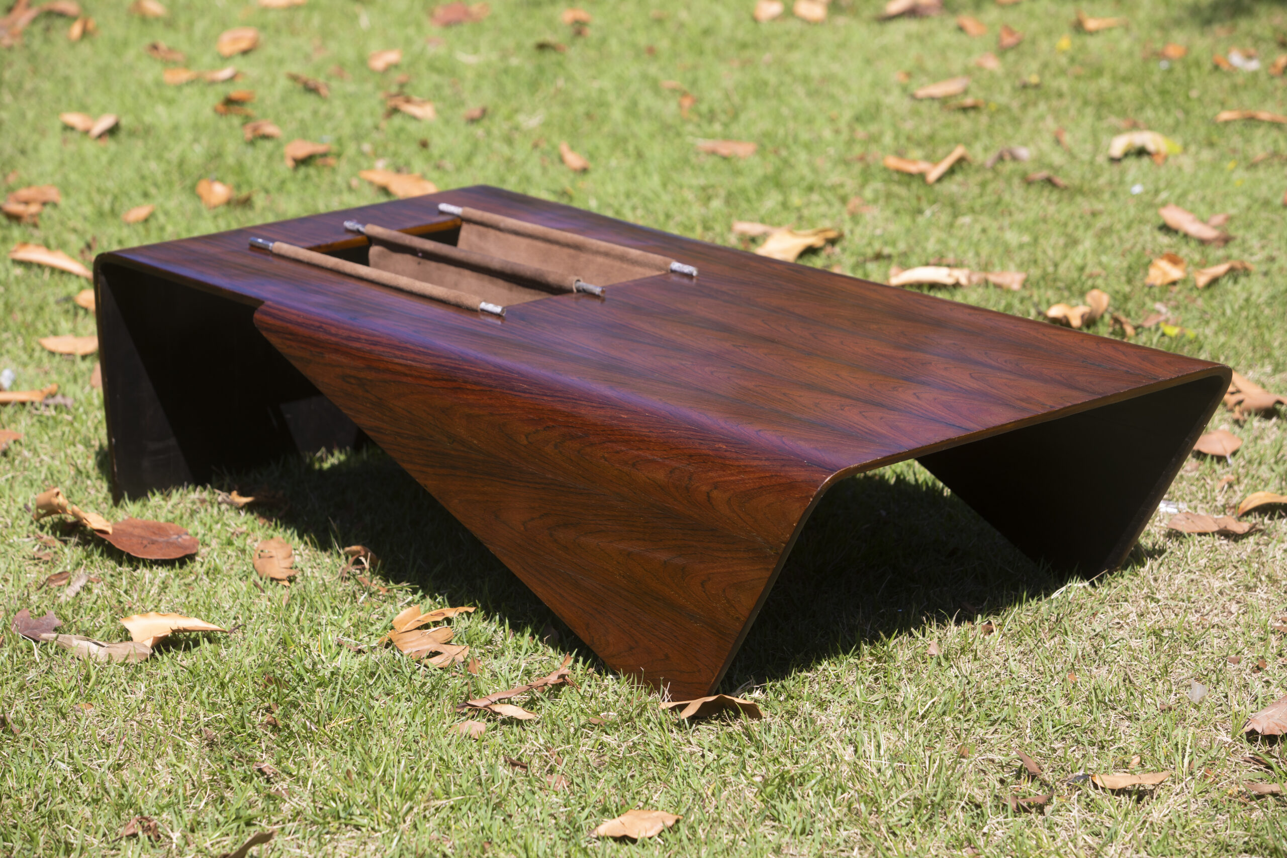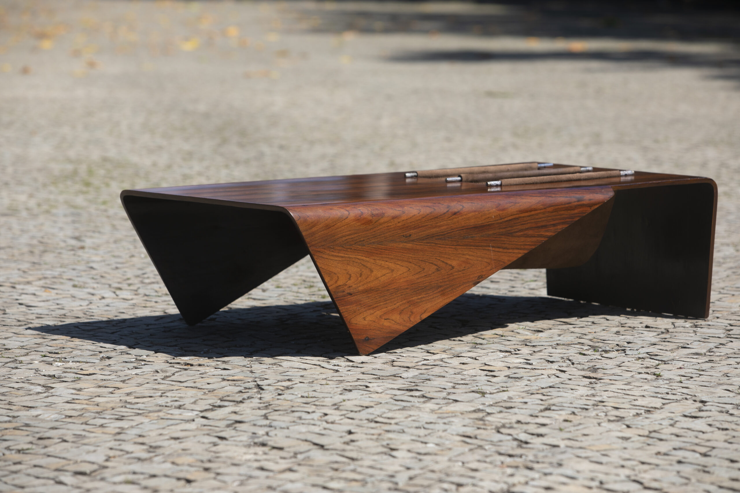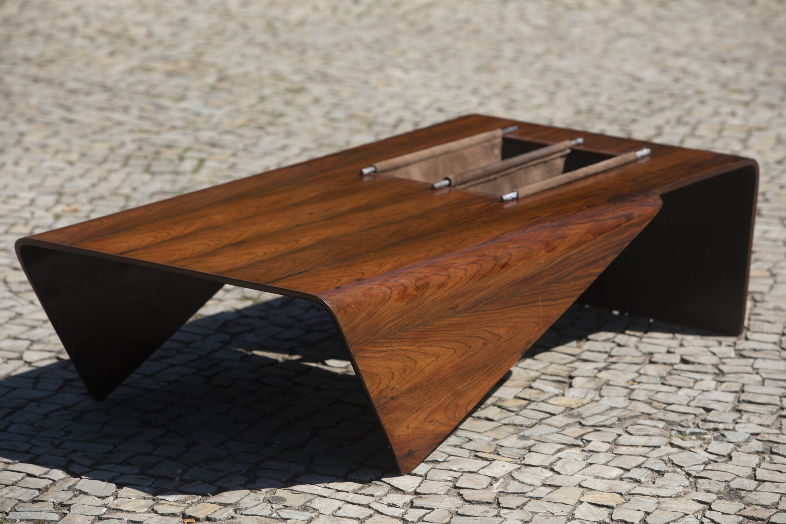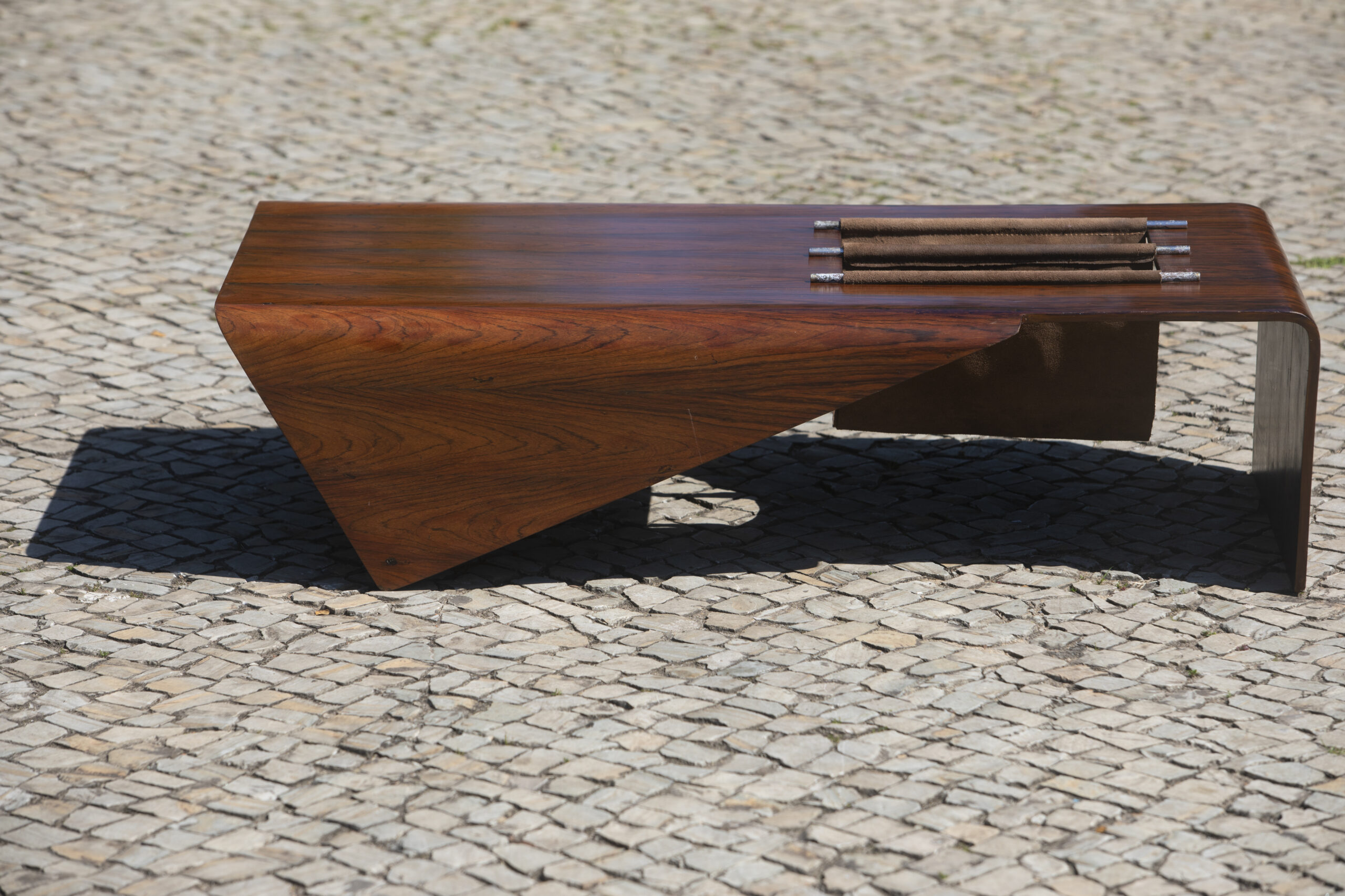 Inspired by origami, the Japanese paper-folding art, the ‘Andorinha’ coffee table and magazine holder is named after the swallow bird, its sides resemble wings pointed down in flight.