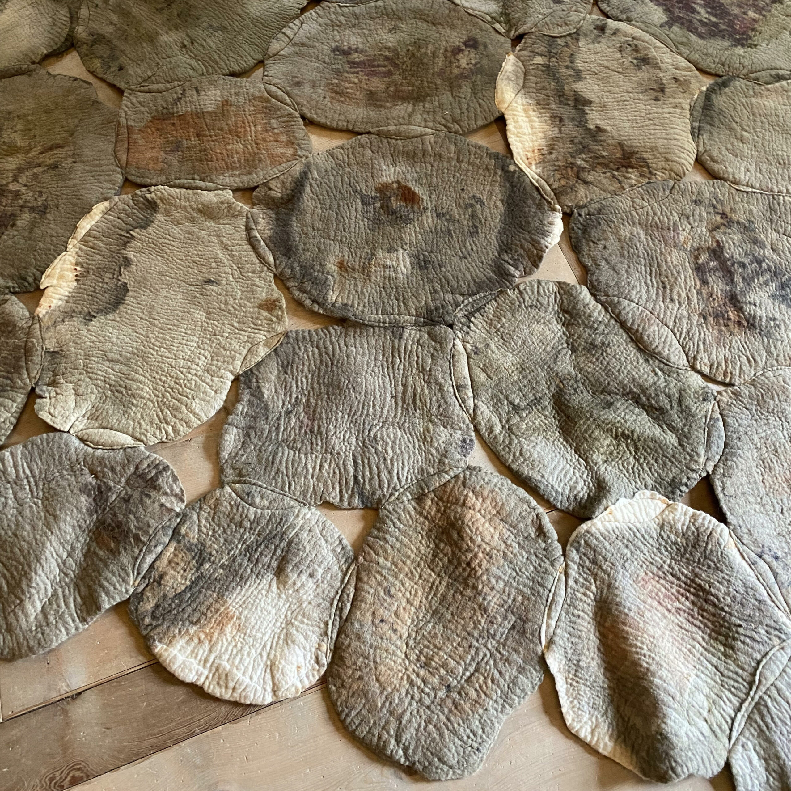 Ines Schertel’s primary material is sheep’s wool. As a practitioner of slow design, the artist takes a holistic approach to textile design, personally overseeing the whole process from shearing the sheep to handcrafting each item, all done locally at her family’s farm in south Brazil. Paying respect to the Middle Asian rug making tradition, Schertel works by hand felting the wool in the same way the nomad tribes did, revitalizing the ancient technique with a fresh, contemporary look. All her pieces are 100% natural and exclusive.