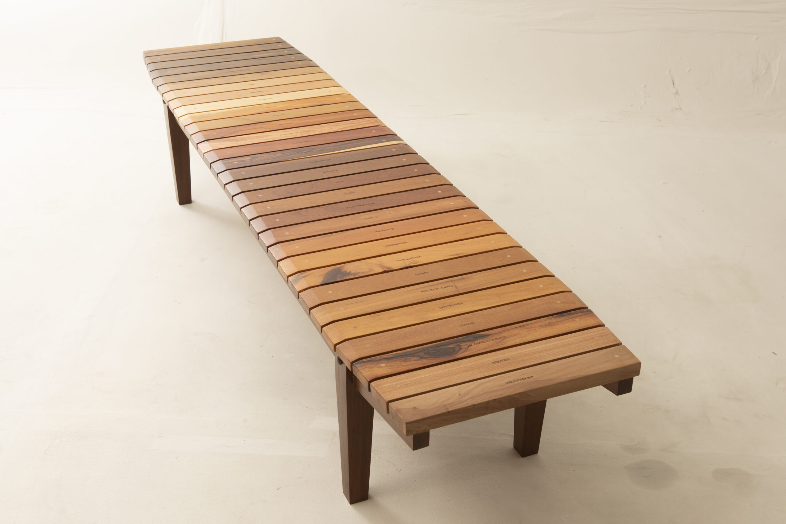 Xiloteca S-12 bench DJ Papagaio 2024 Brazil Wood h40 x 205 x 50 cm h15.7 x 80.7 x 19.7 in Available Location: USA SKU: SE-DP0001 Inquire